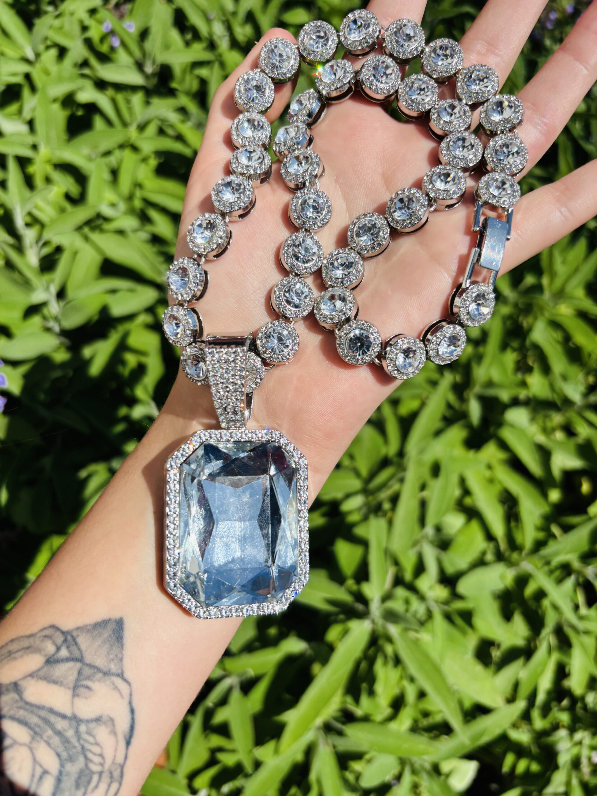 Cadena elegante con incrustaciones de circones brillantes que aportan un destello inigualable. El protagonista es un colgante ovalado con un cristal central de gran tamaño, rodeado de detalles que potencian aún más su luminosidad. Una joya que mezcla lujo y sofisticación, ideal para quienes buscan destacar con estilo y exclusividad